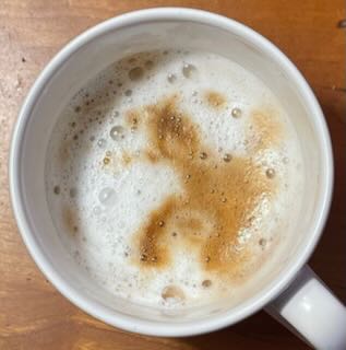 And then there's the variant that I switched to that probably has no name; I call it the "Medium Chaos". I add a small amount of warmed half-and-half to my cup. Then I use the steam wand to shoot the water into it. Finally, I pour in the coffee. I get creamy, bubbly froth intertwined with strands of crema. I think it's lovely and delish; I might be alone in that.