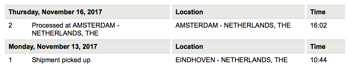 Guys a quick update. Two days ago Apple showed sent with exp delivery on 27/11 (the end of the initial est range of 20-27/11), DHL said shipment info received in Eindhoven (weird. Delivery address should be The Hague). Today Apple’s website changed to sent, on the way to customer, on track, still est delivery 27/11, DHL still shipment info received only. Anyone knows I can suddenly expect to see Apple bringing forward the final delivery date from 27/11??