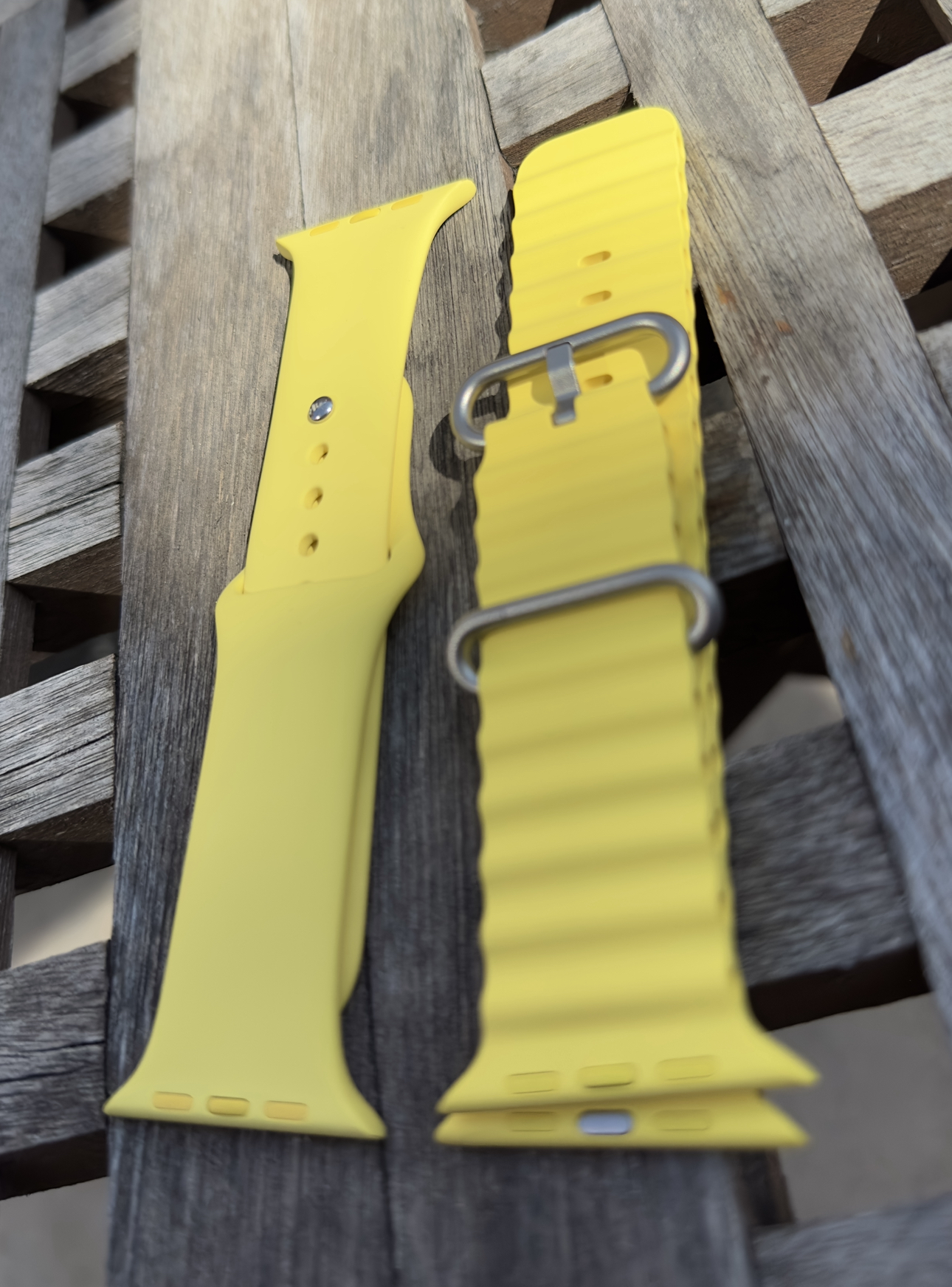 Meanwhile, I love the yellow far more than the other two. Underwater especially, I bet it looks awesome. Almost makes me want to buy an Ultra and go diving!Yeah, I can imagine Midnight and White being more popular (as the „safe“, neutral options) but numerous folks here have posted pictures of the Yellow on their Ultra as well … just no comparison to the yellow Sport Bands yet.