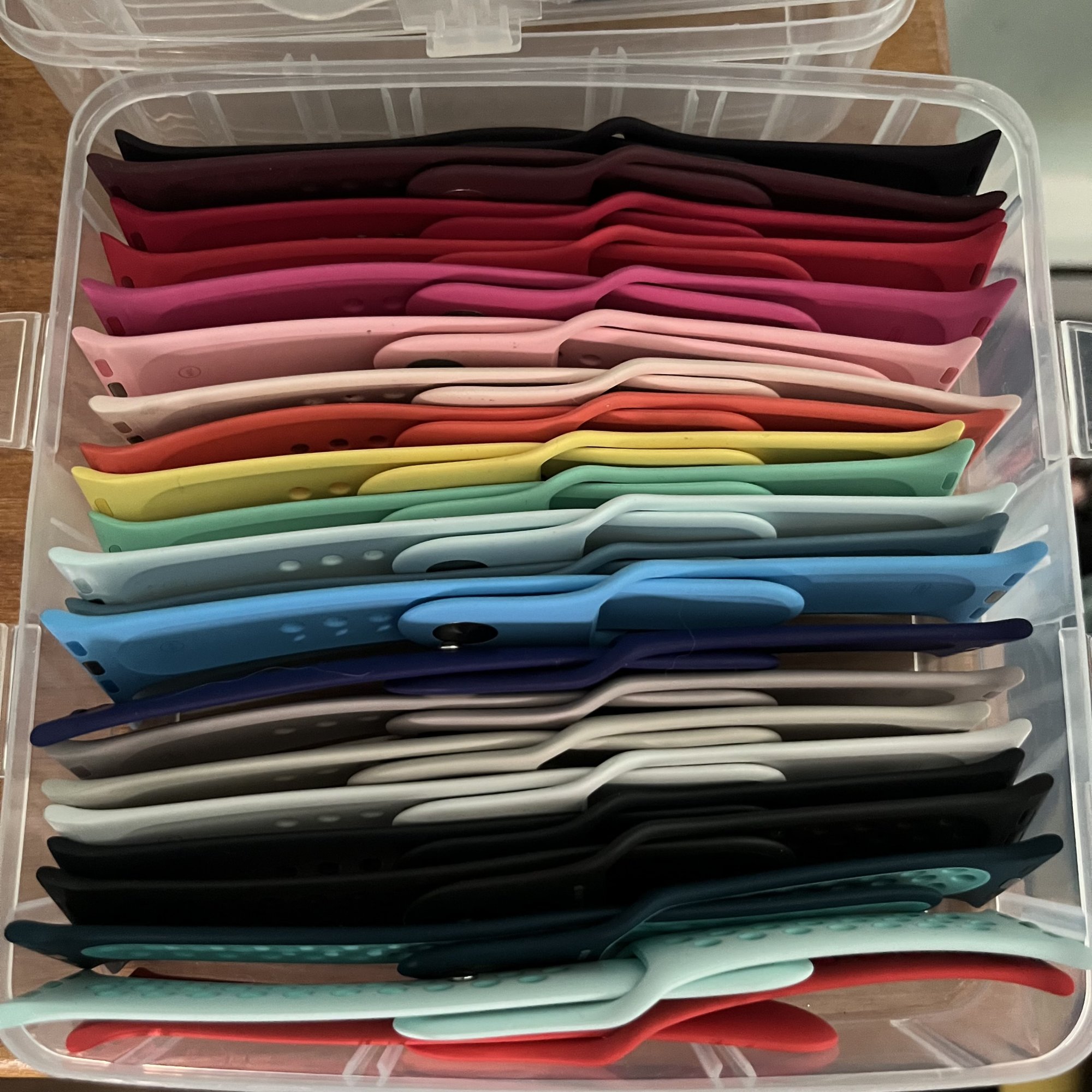 I like it! Here is how I’ve kept my Apple band collections. I have 1 case for the smaller bands and one for my newest 45mm watch. I also have a case for my knockoff Amazon bands.How you guys keeps your bands organized? I used to have the organizers with straps on the inside, but the collection was getting too much I think for those.. I’m trying this that I found on target at $2 each 😄 what do you think?