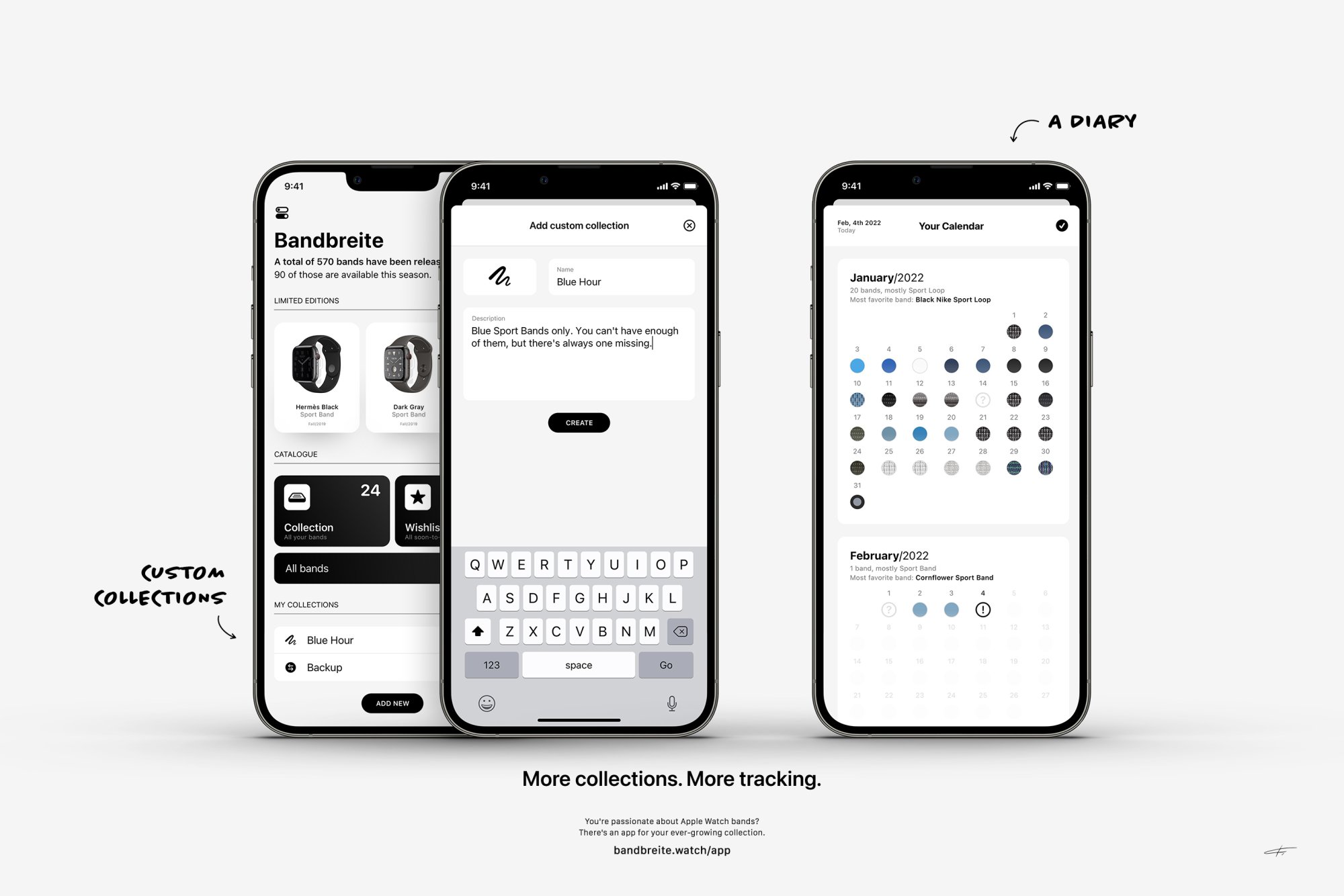 - The ability to automatically sort the bands by wear time would also be great. Then you can see how long you have worn which band and recognize favorites. Could be integrated into the widget with the band recommendations. When you change a band, you select it and a timer starts in the background.