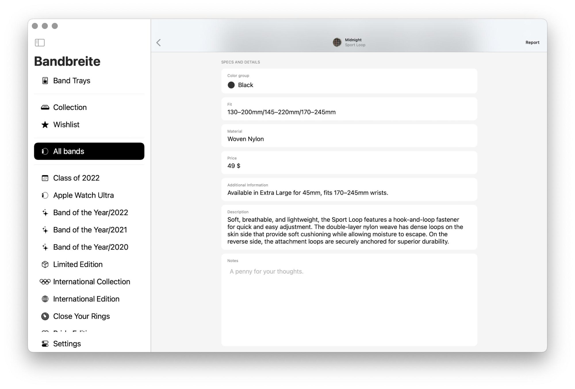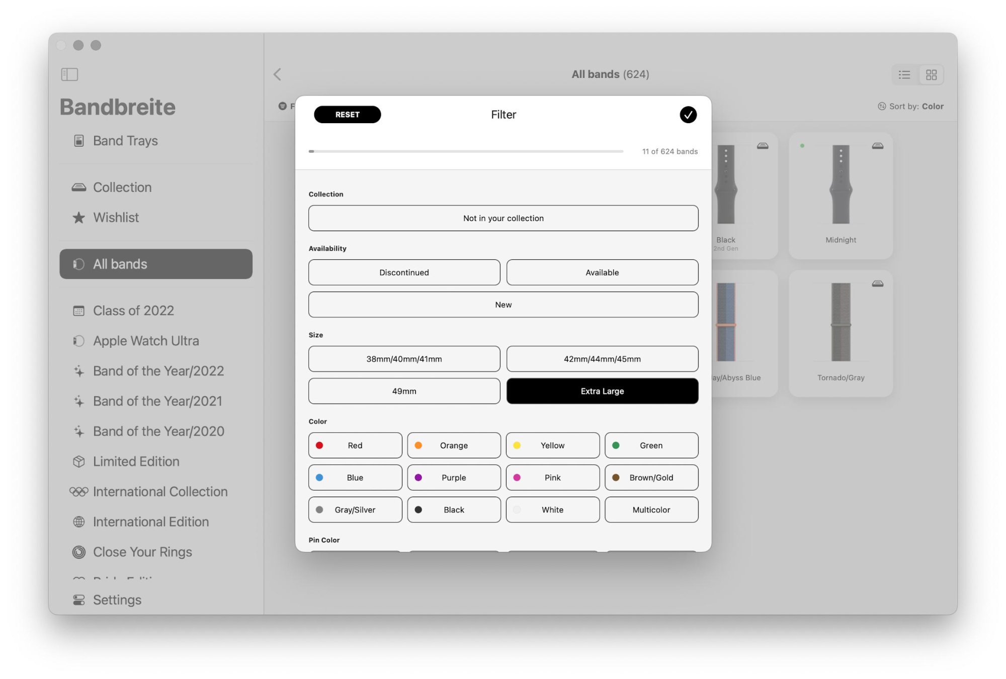 Yay to the iPad app!!We do——not as individual bands though. Every band detail is mentioning the XL size in "Size" and "Additional information" fields where available. Additionally, you can set a filter for the extra size.