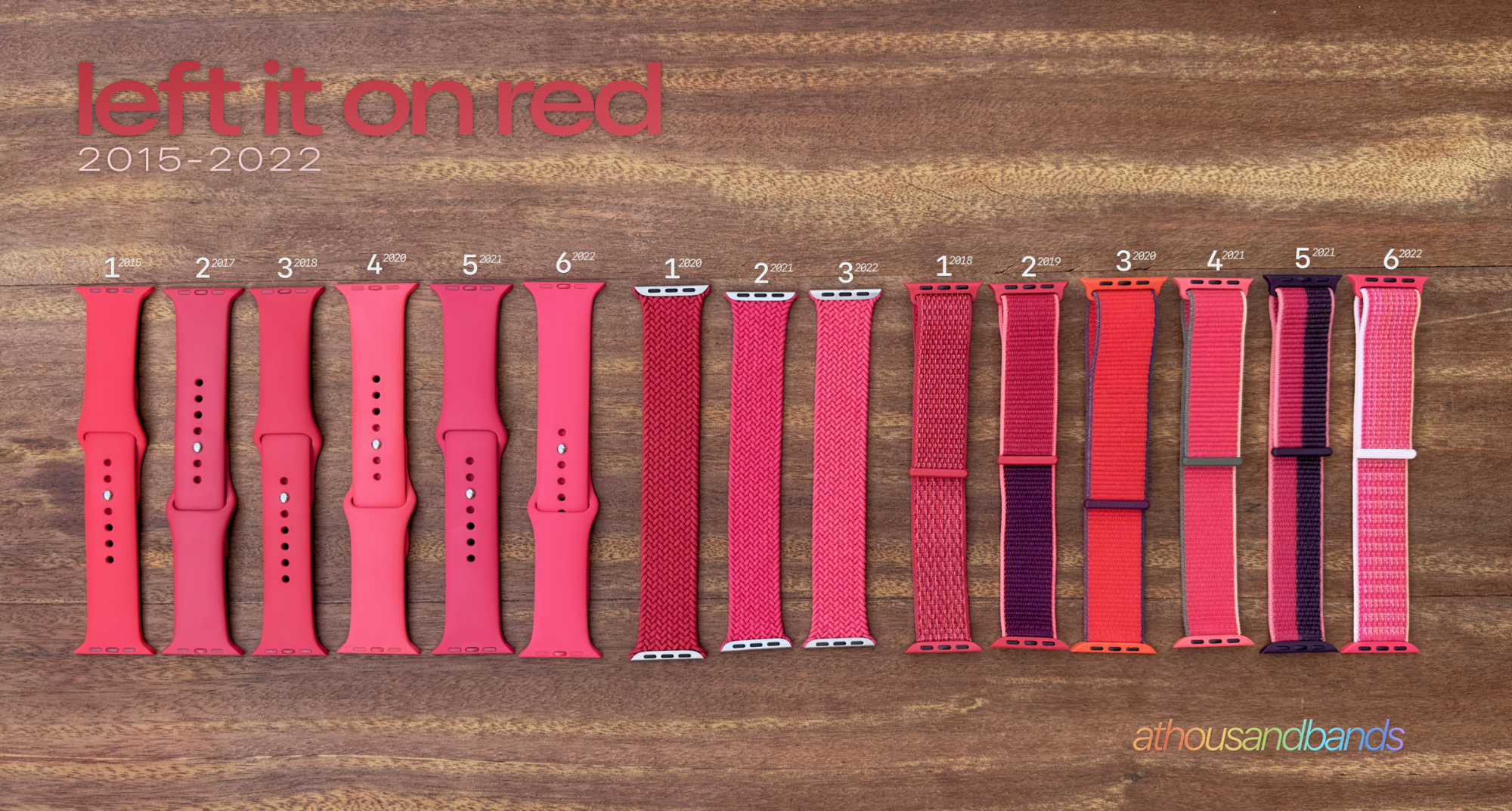 You can also see Apple's experimentation with adding more to it, I guess after a while keeping it all solid red complicates things? Wonder if this means we're due for a sport band redesign soon. Dual-tone?