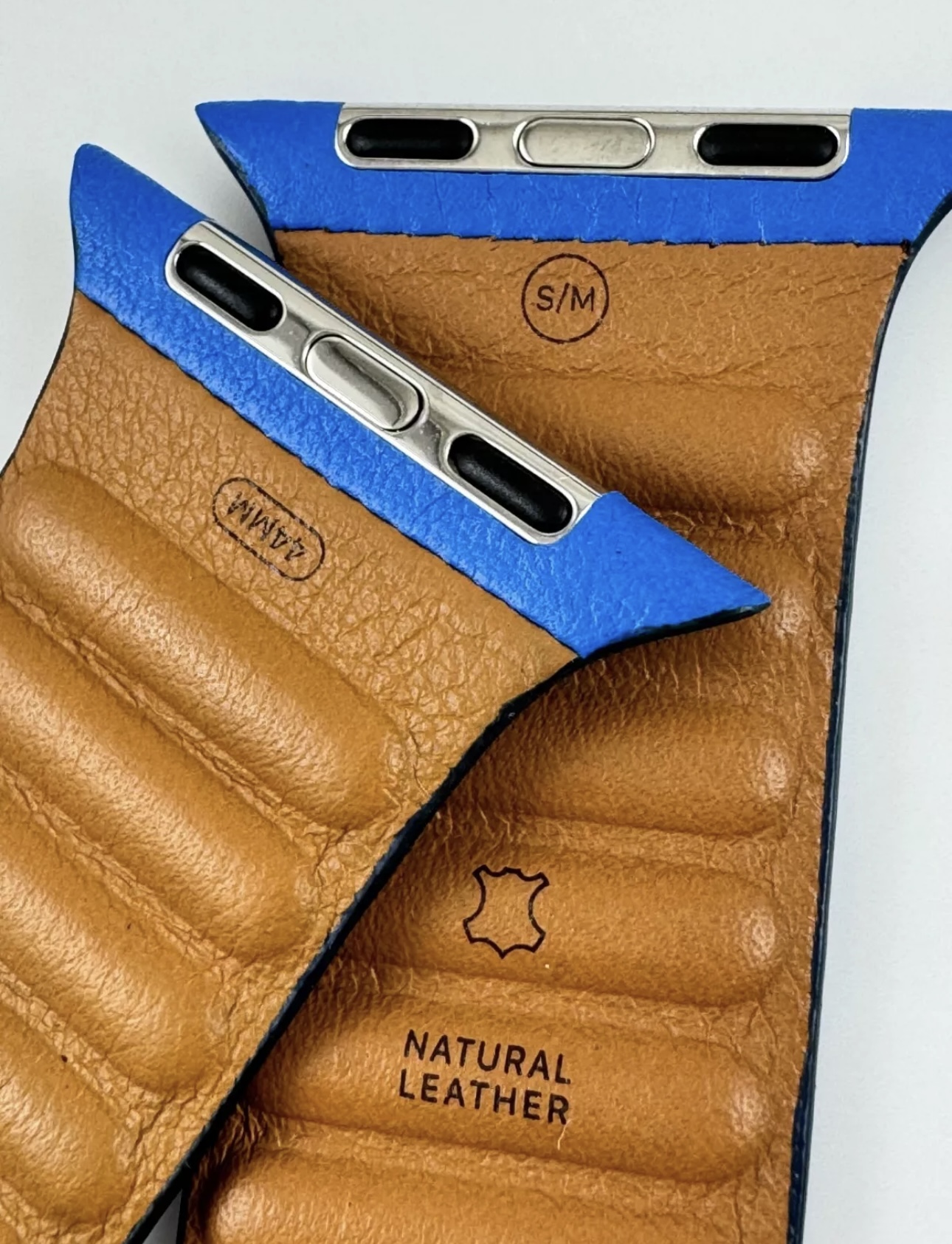 Here are some additional pictures from the seller. Electric Blue indeed goes back some years ago when we had the Classic Buckle leather band.What's really cool is the Electric Blue color is from the Series 3 era, so bringing it back is totally unexpected. The orange looks like an exact match to the Orange leather wallet and 14 pro max case.