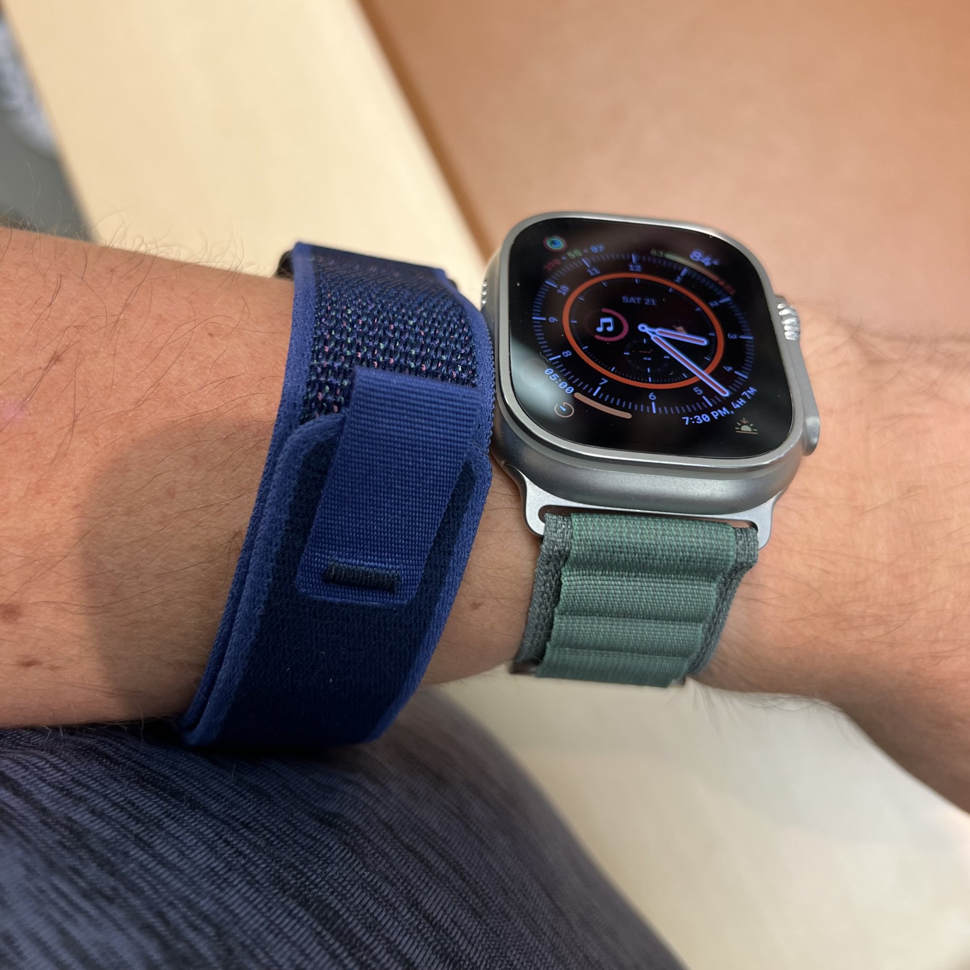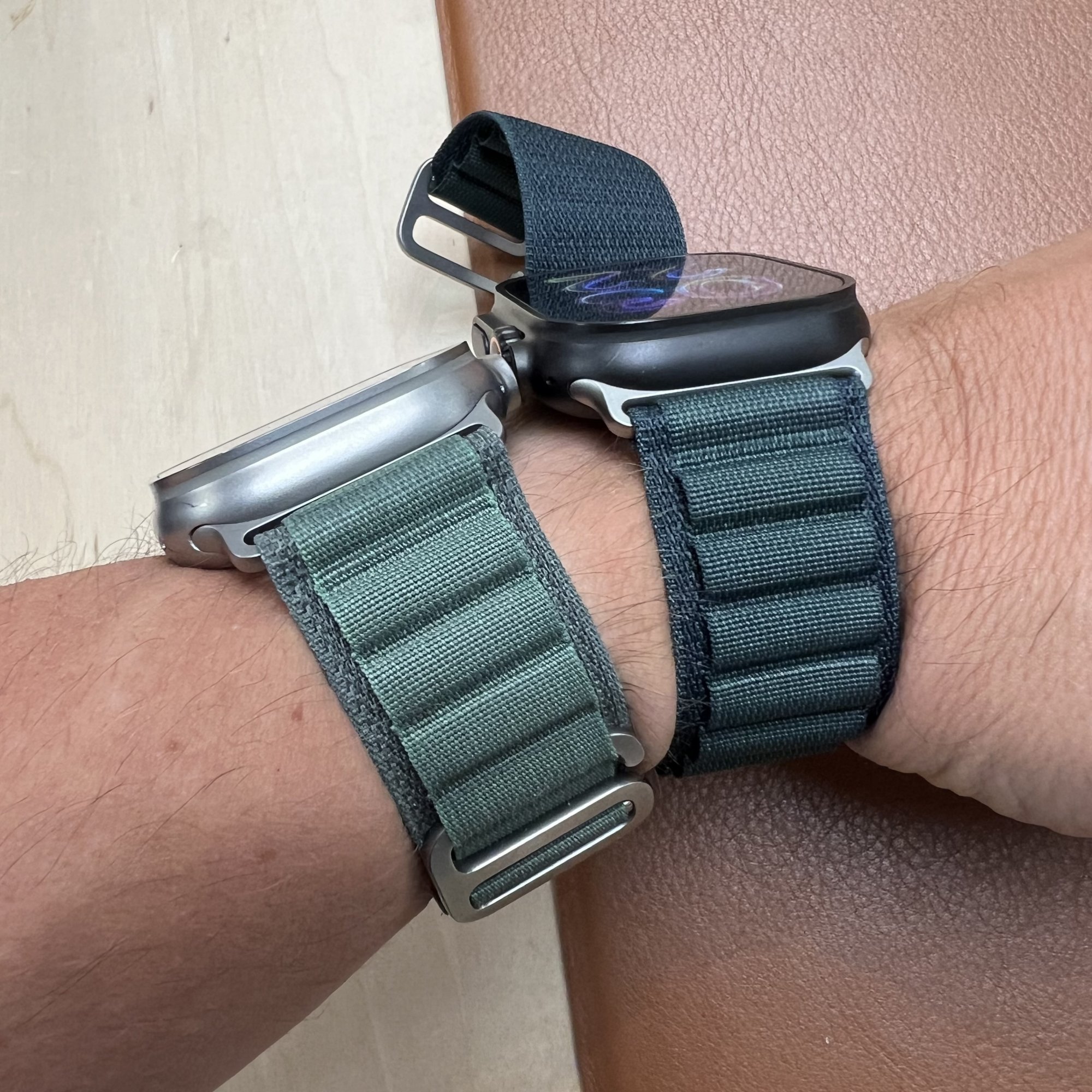 Tan is 2nd place for me, but still a winner. The loops really have a pleasant maize color while the band itself is more desaturated than in Apple’s photos. The Dark Green feels specifically made for the black Ultra; Tan actually feels more aimed at Ultras with natural titanium cases.