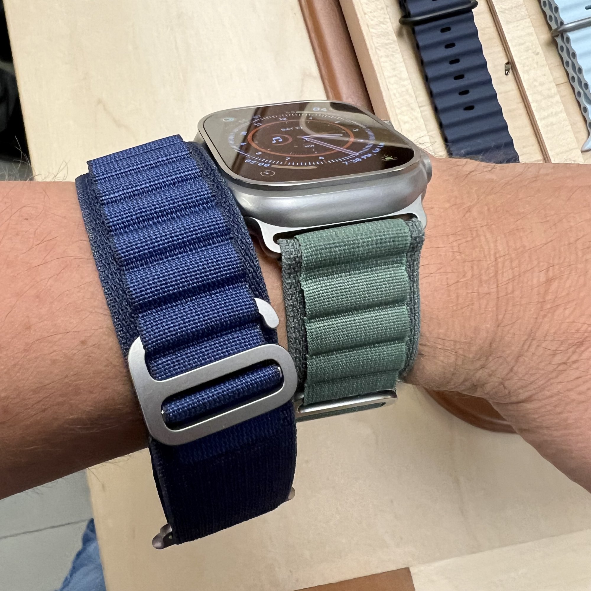 These are my all-time favorite Watch Bands, so I was most excited to see these. I wore my OG Green Alpine Loop to the store because I wanted to compare it the new Dark Green. The new band is the “dark mode” version of the original. It’s very nice but will be a low priority for me personally due to its similarity.