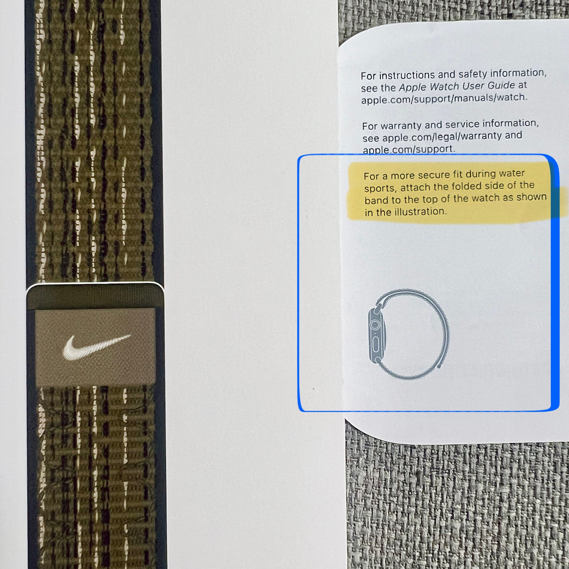 Here’s the documentation that comes with the Green/Grey Nike band regarding which way you put it on. It’s strange that their product images show it on backwards which is less secure.