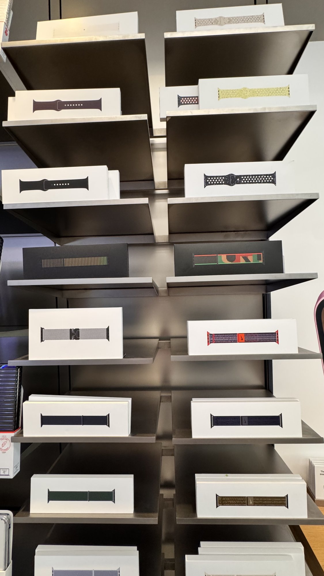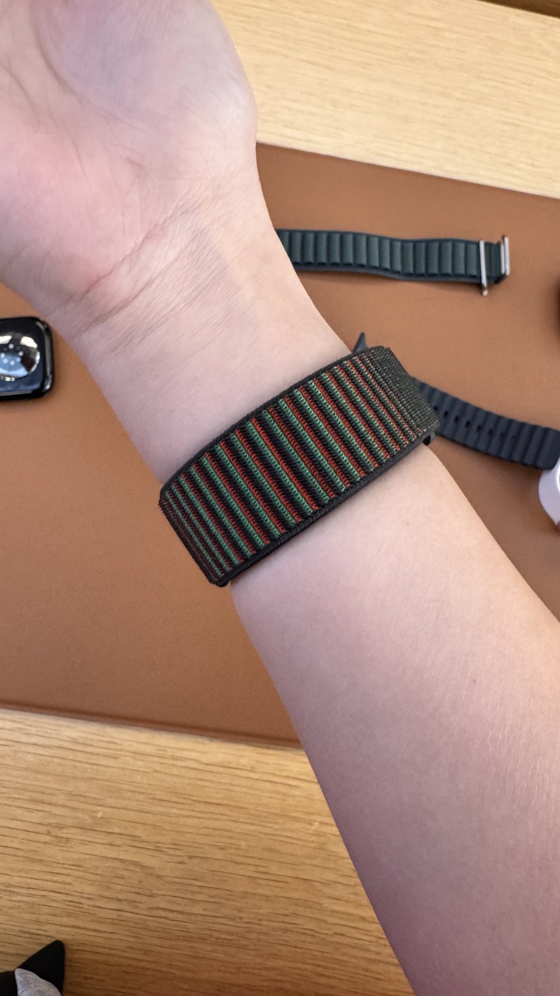Ohhh I came the Sunday after the bands came out, my nearest Apple Store isn't the newest but they also had a 46mm one available for trying on, too.This is nice. The Thursday I picked up my band, there was no display at the store. The watch band came from the back and the employee didn’t know about the band—tried to sell me last year’s band. Maybe I was just a day early.