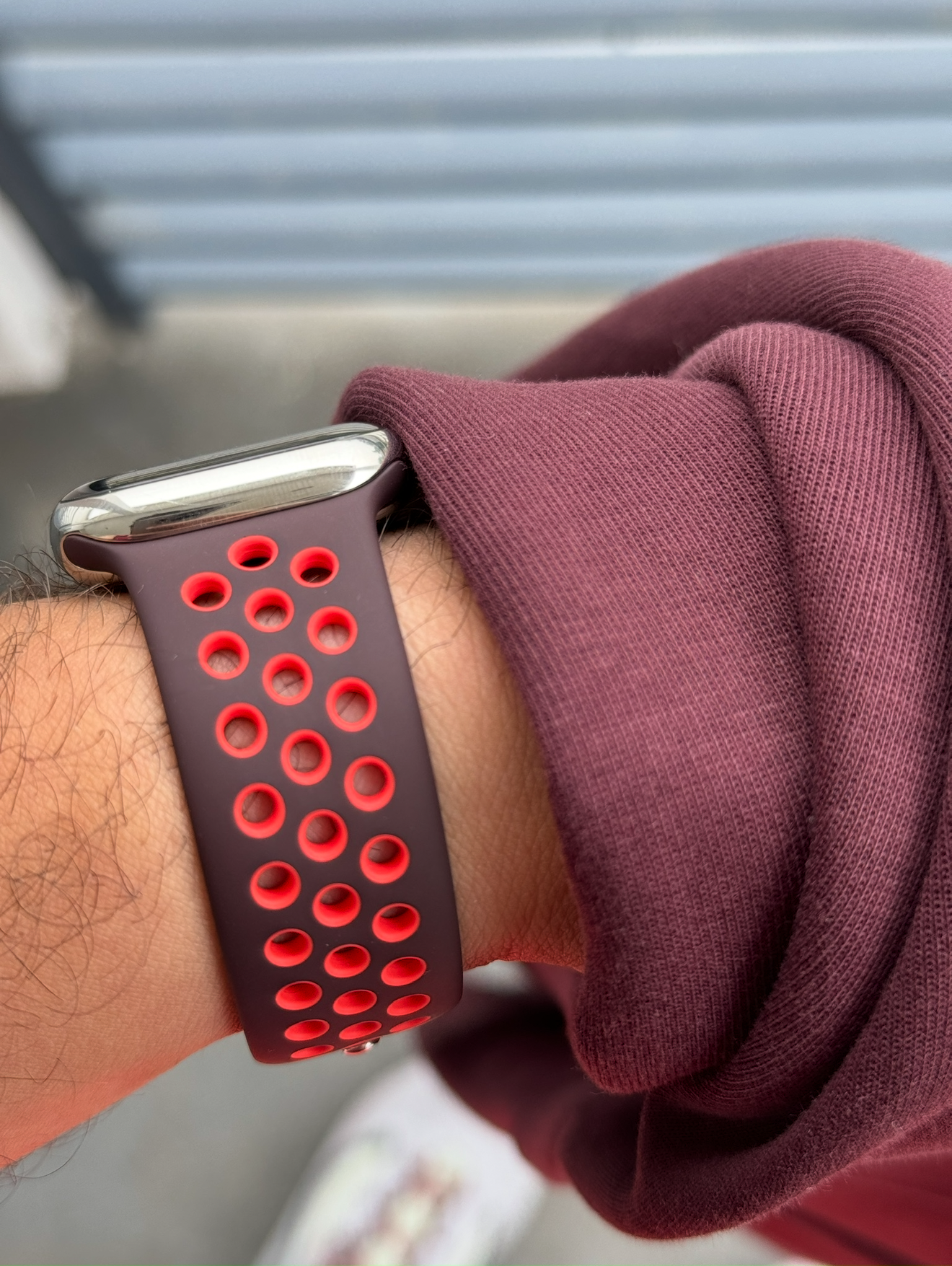 Def. a mix of dark cherry like Burgundy Crush and bright crimson! Only one such bright crimson Sport Band was ever released by Nike andTaking my Burgundy Crush/Bright Crimson Nike sport band prototype out of its tray for one final look before it goes up on marketplace 👀