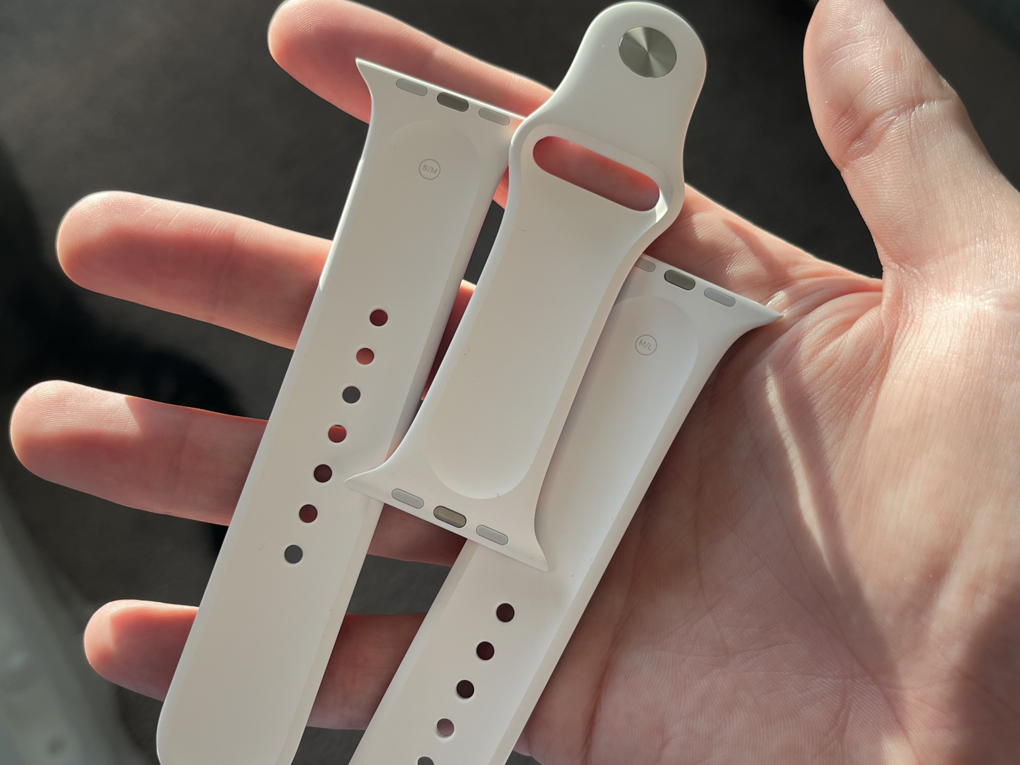 First of all, the printing quality is near perfect. The different layers line up so well, the finish quality feels soft and smooth, and the printing wraps underneath the lugs and pin, something that had to be done pre-assembly. In addition to this, the pin strap is missing printing, while the S/M and M/L have it, likely as this is a 42mm band released in Fall 2018, which would have been right when the switch to 44mm was happening. Missing printing bands like this logically can only come out of the Apple factory. (The fact that there's both a S/M and M/L helps the case... 99% of fakes only include a M/L!)