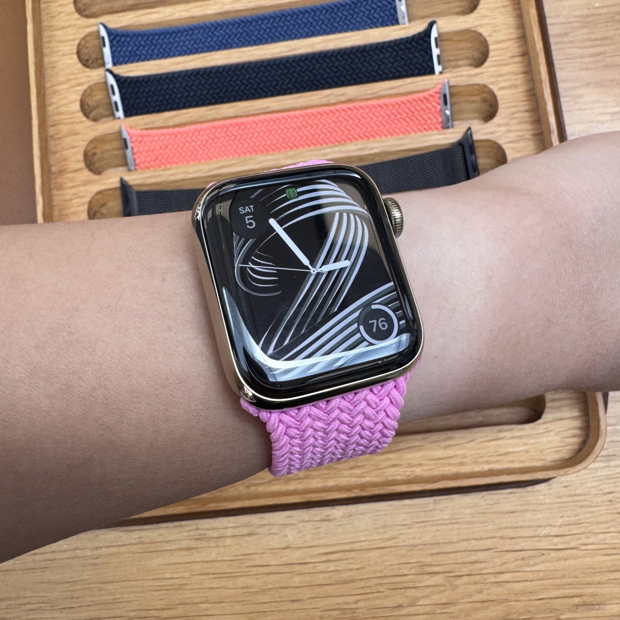 You switch between Apple Watch sizes? I stick to 40/41mm.Lake Green sport band (silver steel)