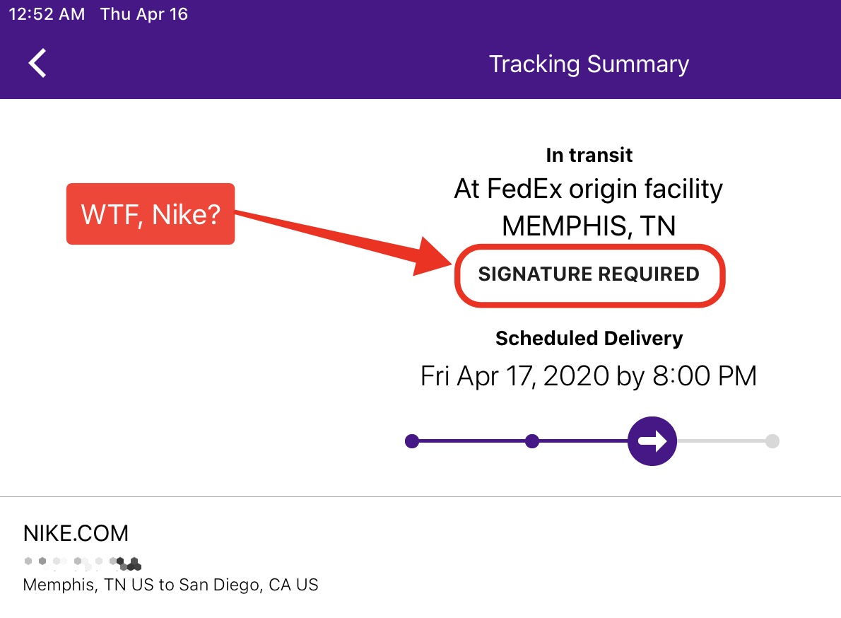Ordered, got this - is Nike completely unaware that there’s a thing going on where we want to limit interaction at all costs?