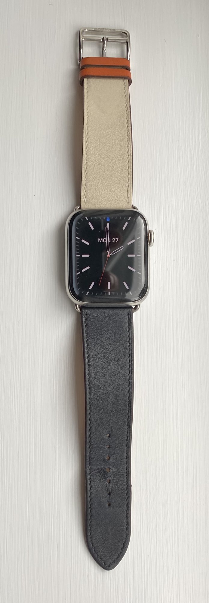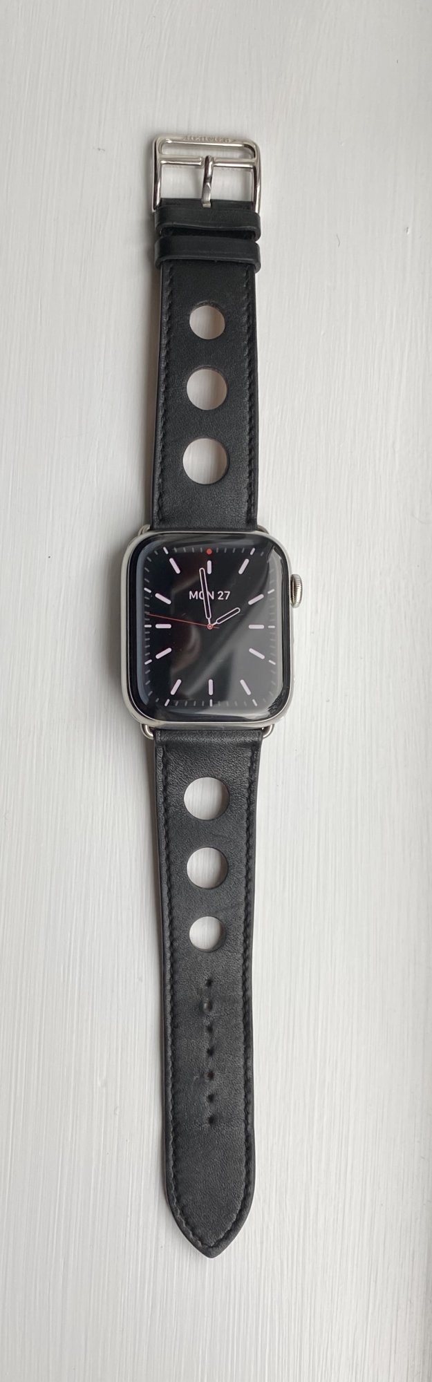 Struggling to keep myself from buying a Hermes band. I have a SS series 5 44mm with the silver Milanese Koop, a surf blue sport band (on order), and a Sunshine sport loop (on order). But.... I want a “nice” leather band I didn’t like the apple leather loop. I LOVE the noir Hermes with the black hardware. I’m also tempted by the noir/blanc gold and the encre beton. Does anyone have any pics of these with the stainless steel watch or can convince me not to order one?