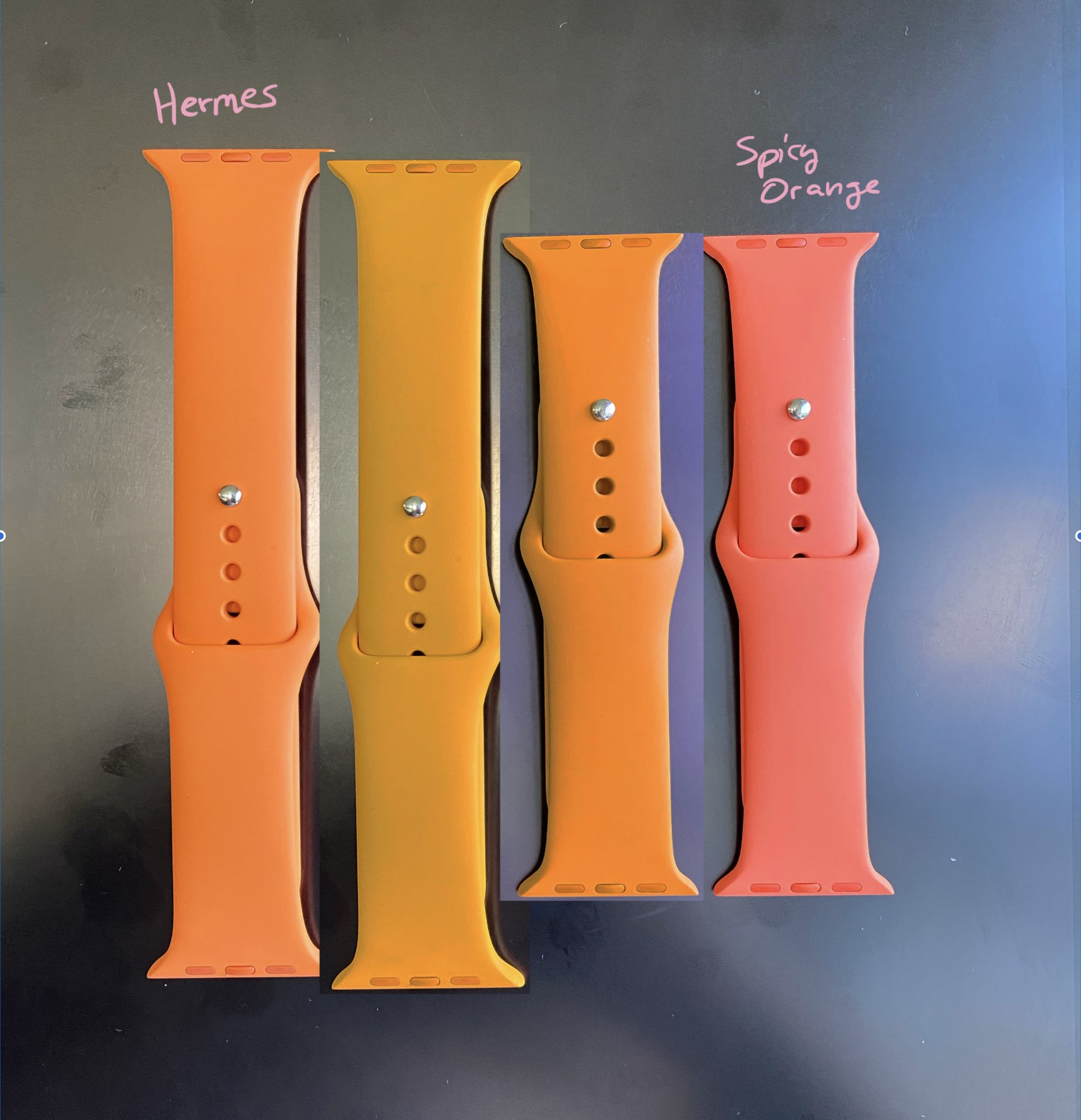 You're right there are a bunch of oranges and some are nicer than others to my eye, some are nicer than others to your eye, and they may or may not be the same ones. There could well be a nice orange in the future - maybe even next month - but there won't be an orange like Hermes orange, at least not until Apple and Hermes have parted company, and likely not then either.