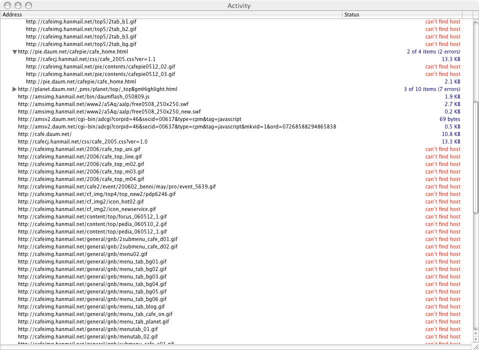 The problem is, every single browser I've/she's tried so far (Safari, Firefox, Camino, Shiira, and Opera, not much of a variety, but better than nothing) has issues opening most pages at that site. They appear to be loading the page but before it displays anything it beachballs and eventually (after waiting like 20 minutes) I forcequit. I can't even figure out what it is that's making the browsers hang because I can't load enough of the page to figure it out, and I can't use links/lynx/wget/curl because of the bizarre authentication system + javascript-only navigation in place. This is pretty recent too, it used to be perfectly fine until a few days ago.