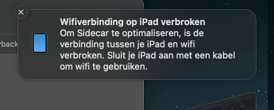 "For a more stable connection we stopped wifi on your ipad. If you want to connect the ipad with wifi, connect the ipad with a cable to your computer."
