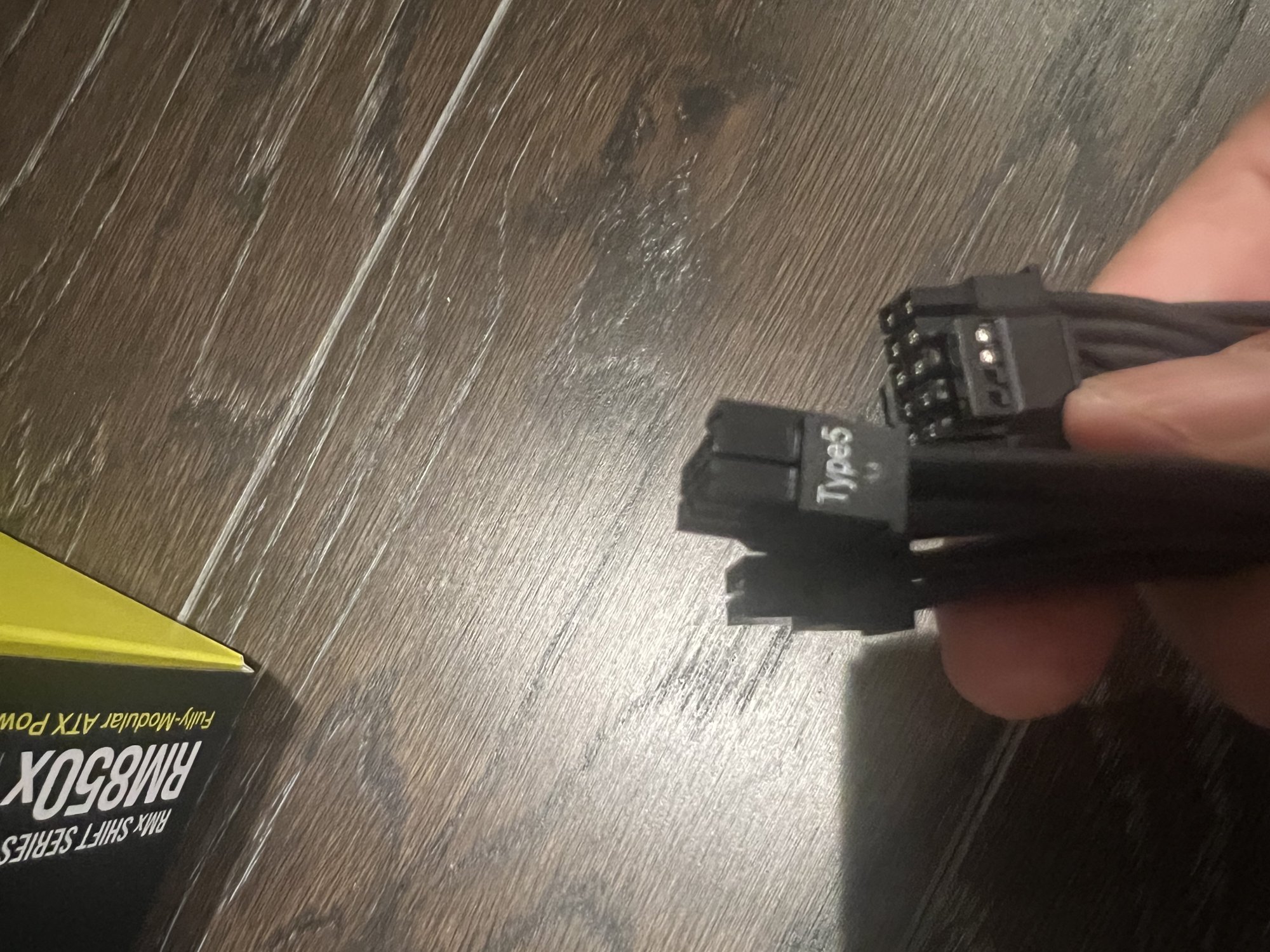 Based on the link you provided for the compatibility it looked like I needed a 12 pin -> 2x8 pin Type 5 cable, and it looks like the attached photo is what I have. But no luck. Would you be able to show me some photos of how you connected those cables to your Corsair PSU and to your RTX4090???
