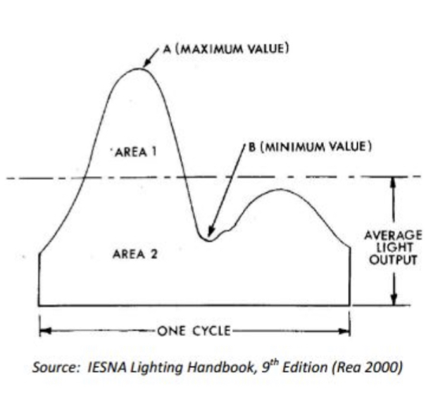 You are definitely right about being confused about a rate above 100%. I described it as simplified as possible to convey the main idea.This is interesting! The term used would be flicker percentage or percent flicker for modulation depth (difference between max and min light intensity). What confuses me about the measurements you refer to is that some of them are above 100%. That's not possible with flicker percentage since it can't be brighter than max or darker than no light. I'm not sure what that meter measures if it can present values like that.