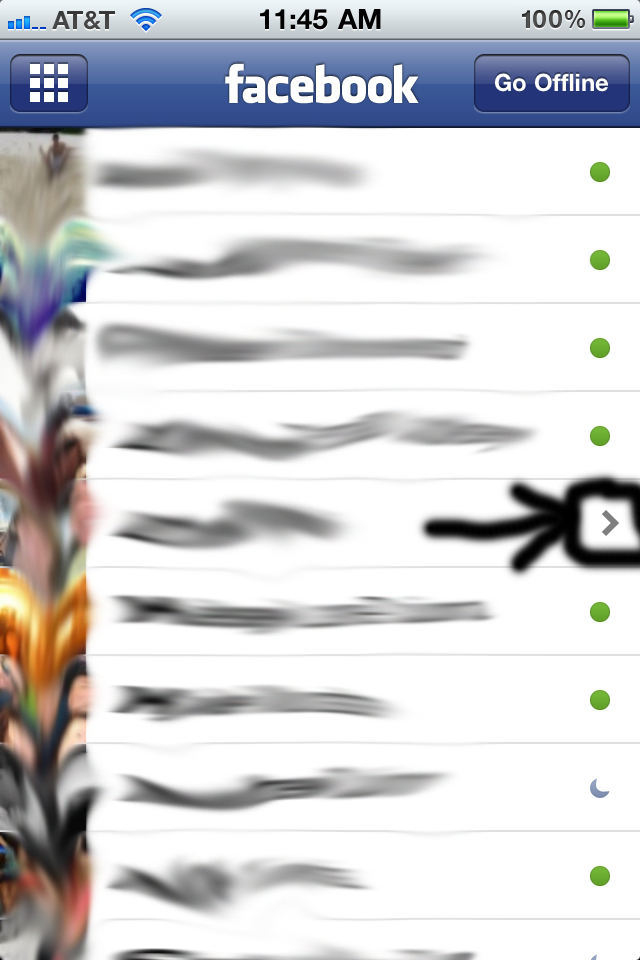 On the Facebook app within the chat section there are different icons meaning different things, the green circle is online/available, the moon is idle, and it doesn't show the user if they're not online, but I haven't been able to figure out what the arrow icon means? some people have said that it means a weak connection, but I'm not sure. Anyone know?