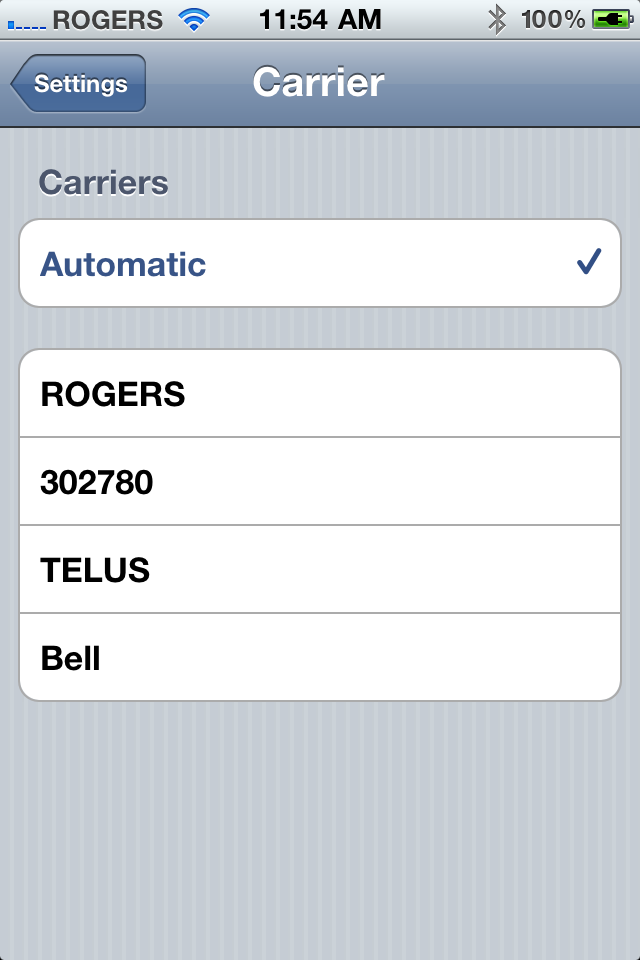 So I know that Canadians could, in theory, buy unlocked devices, but I can assure you that I bought what I thought was a carrier locked iPhone (locked to Rogers, via hardware upgrade, bought on Canadian launch day). However, when I go to my Carrier screen in my settings, I'm presented with a list of Canadian carriers: