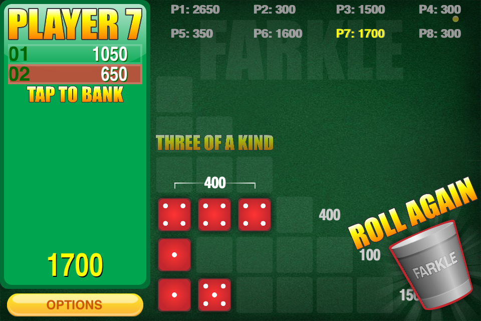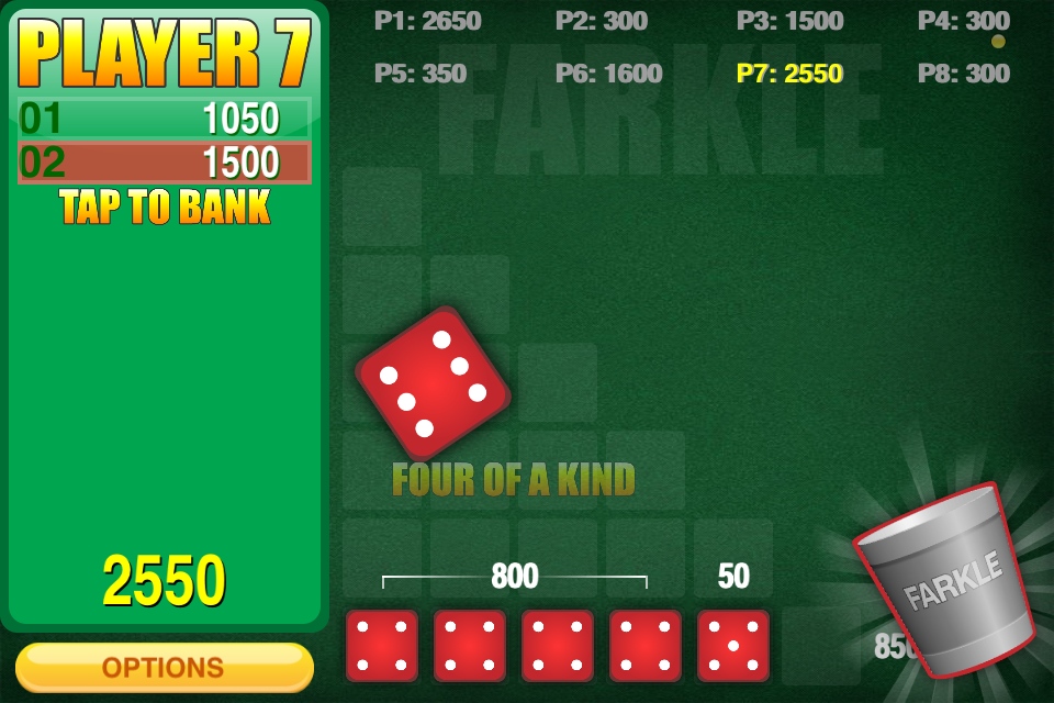 * Hate those 6 dice farkles? - You guessed it, we have it, and you can turn it on or off