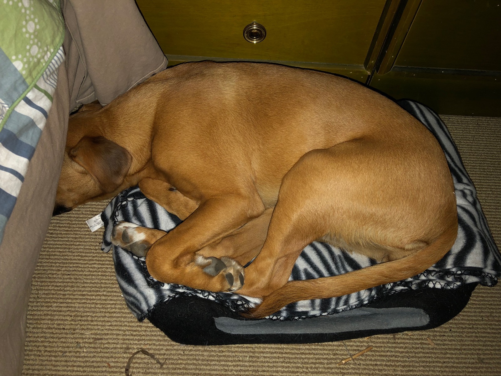 When I got back to pick her up, or see if she had to be transferred to an overnight facility, Fenna was like as though nothing had happened, apart from the little shaved section on the front right leg!