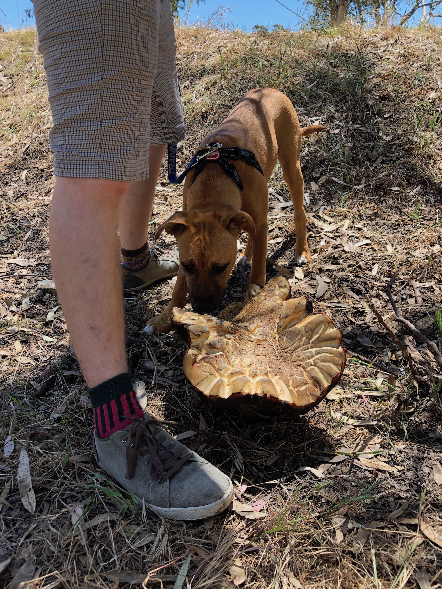 Fenna chilling on a cool drain cover, while I sit & have a coffee before heading off for the day.