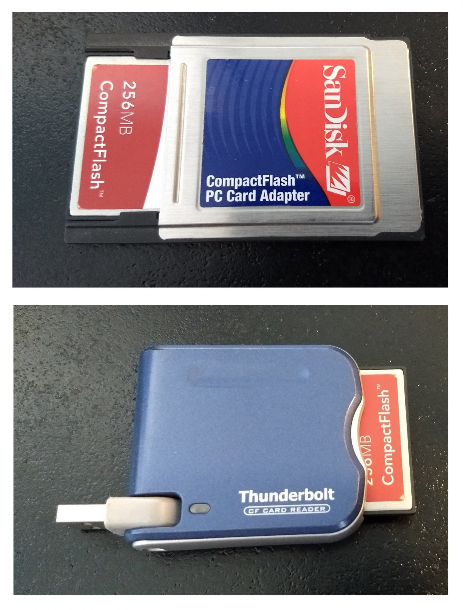 To then interface the files you've written to another computer (that lacks a PCMCIA slot), all you need is a USB card reader. Works like any USB flash drive, except the media is removable. Just put whatever you want to move onto the CF card with your PB1400, then eject the card adapter, remove the CF media, and stick it into the USB CF card reader. Stick that into whatever computer you're trying to transfer files to, and as long as the files are in a recognizable format, you're golden.