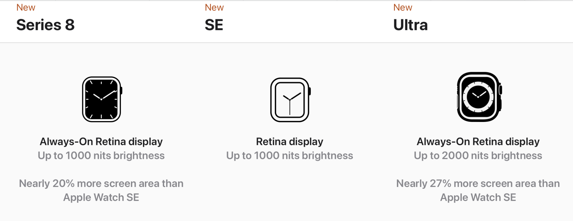 This image indicates that the Ultra would have 21.3% more display area than the SE, and just 3.7% more display area than the Series 8. Hmmm...