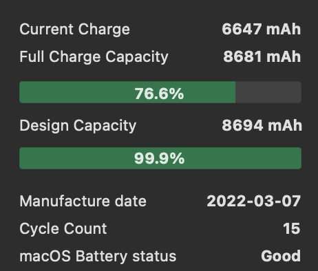I've been using my M1 Macbook Pro for about 9 months, and so far it's been an incredible replacement for my proudly "vintage" 2012. The battery life is still insanely good, so it's had me wondering more about what happens under the hood. I took both Macs and did two full charge-discharge calibration cycles and then checked Coconut Battery on each. To my amazement, the old 2012 has 1855 cycles and is at 87.3% battery health. Absolutely incredible for the original battery on a machine that is nearly a decade old!