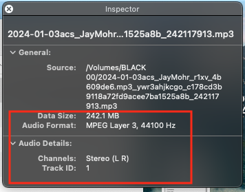 I now understand that https://mediaarea.net/MediaInfoOnline is a wonderful assessment tool for audio and video files. That's a little more handy than using the terminal, if you have internet.