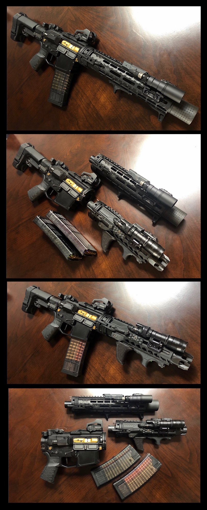 Now another thing I learned wasn't optimal, the hard way, was the lower with the build in folder. The buffer is proprietary, so using certain shorter stocks is pretty much a no go. I wanted a shorter buffer tube but that required a shorter buffer, so I actually just permanently modified the proprietary one into a short one. So I can't go back to a regular size buffer tube without buying another buffer. No big deal, really, but I'm not going back anyway. Oh, and if I decide I want to go with that really short maxim brace, I can't at all because I can't remove the folder.