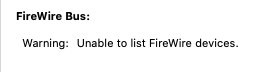 Just picked up a Sony Handycam DCR-TRV460 to convert my old analog tapes to digital. While waiting for my Thunderbolt to FireWire adapter to arrive to try the camcorder on my M1 MacBook Air, I decided to try to connect the camcorder to my 2012 MacBook Pro that still has a FireWire port built in, and unfortunately its failing to recognize it. When I plug it in before starting up macOS, it shows this message in System Information