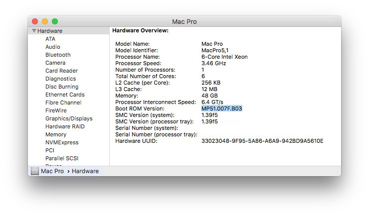 I have recently purchased a 2009 Mac Pro with the intention of upgrading the processor. I just installed a new ssd and memory and was checking to see if the memory was being read and I noticed that my mac is already on 5,1 and running Sierra. Not entirely sure how this is possible or if I am reading it wrong. Will I still need to upgrade the firmware or is it good to go?