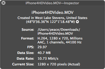 E Espo macrumors 6502 Aug 16, 2007 400 0 NY Jun 22, 2010 #54 Peace said: Nice video. I sure hope the guy doesn't mind it that everybody knows where he lives now. From QT inspector : Click on the little arrow and it takes you right to a google map. Ha! And what's with only one channel ? Click to expand... Does that mean a 27 second video is 43 mb?