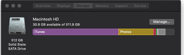 Just on the subject of storage; when I purchased my 13" MacBook Pro 2015 in September 2015 I decided to fork out a little extra and go for 512GB as I planned to hang on to it for several years. I use it for browsing the net, storing my photos and listening to music. I don't keep anything in the Cloud - I prefer to store things on my computer. I have somewhere in the region of 11,000 photos and 3,000 songs and am continually adding to it but even after three-and-a-half-years of owning it, I still have tonnes of space...