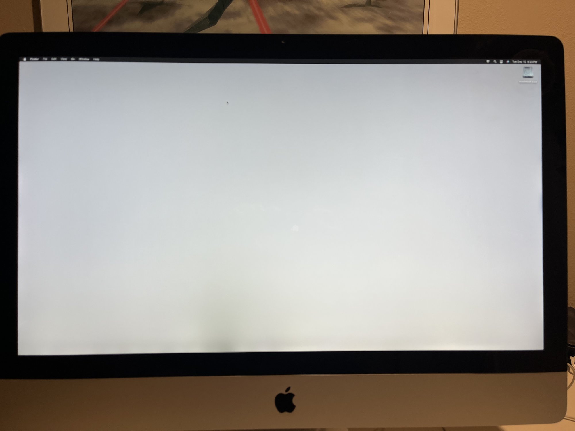 Symptom, can only keep backlight on minimum. Light shuts off instantly if increase brightness. iMac still running. Can see high contrast image (About This Mac popup against black wall paper) with flash light test. Reduce brightness did not recover backlight. Have to reduce backlight level fully with keyboard, sleep (option+command+eject) followed by wake and backlight comes on again at minimum brightness.