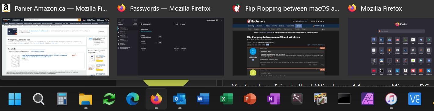 I've always preferred this to the dock-style of grouping everything into one big icon. This way I can go directly to any application window.