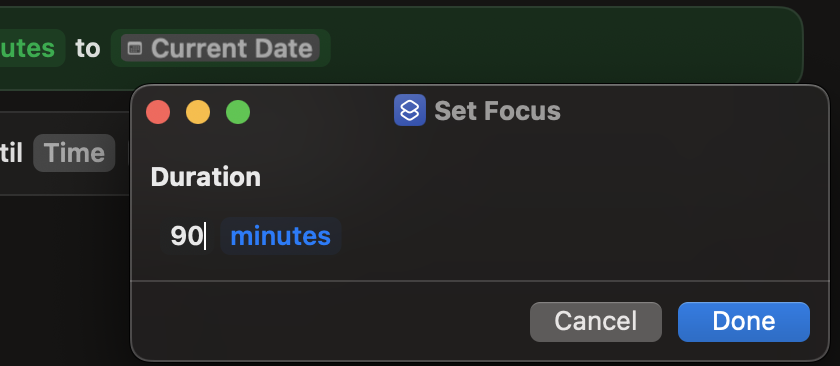 Is there a way to set up Focus or use Shortcuts to have a specific Focus on for a set amount of time -- and then turn it off automatically after that amount of time?