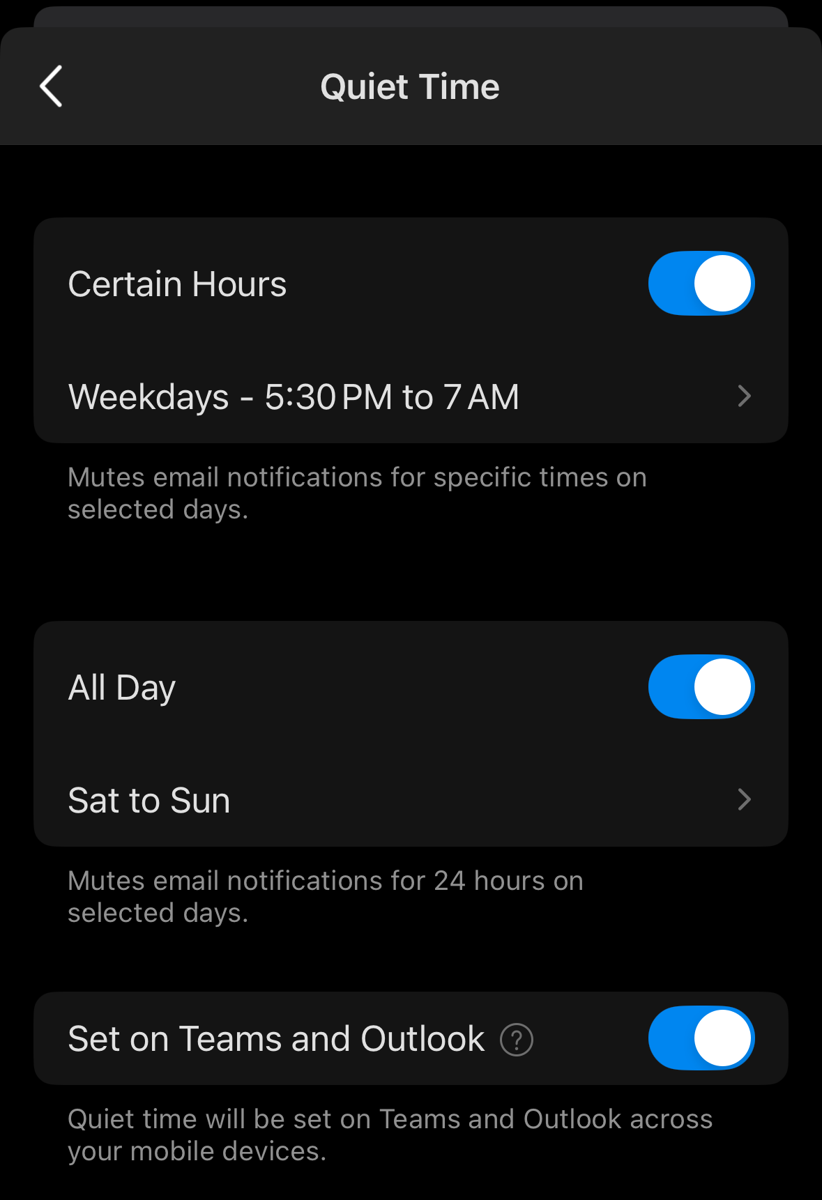 Currently, I go into Notifications every Friday, and turn off notifications for those applications. Then, on Monday morning, I turn them back on. Surely there is an automated way to accomplish this.