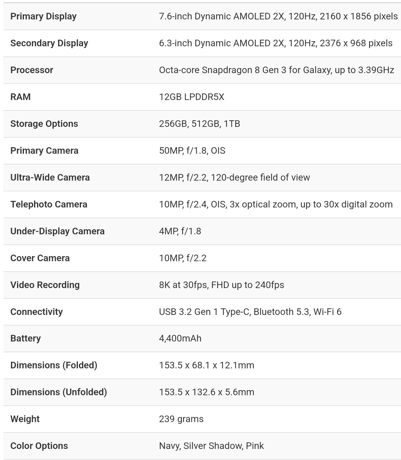 What we don't know is size and thickness and overall performance of the vapour chamber - if used in the Z Fold 6 and how that plays out for sustained heavy performance use and wireless Samsung Dex use for say gaming. Charging speeds is pretty much a given not a major change to the ire of many smartphone techies - yet I wonder if the Note 20 exploding battery fiasco had some major embargo fines and stipulations against Samsung for international flights and shipping that has kept them in the past in terms of charging W and speeds (on a global scale)??