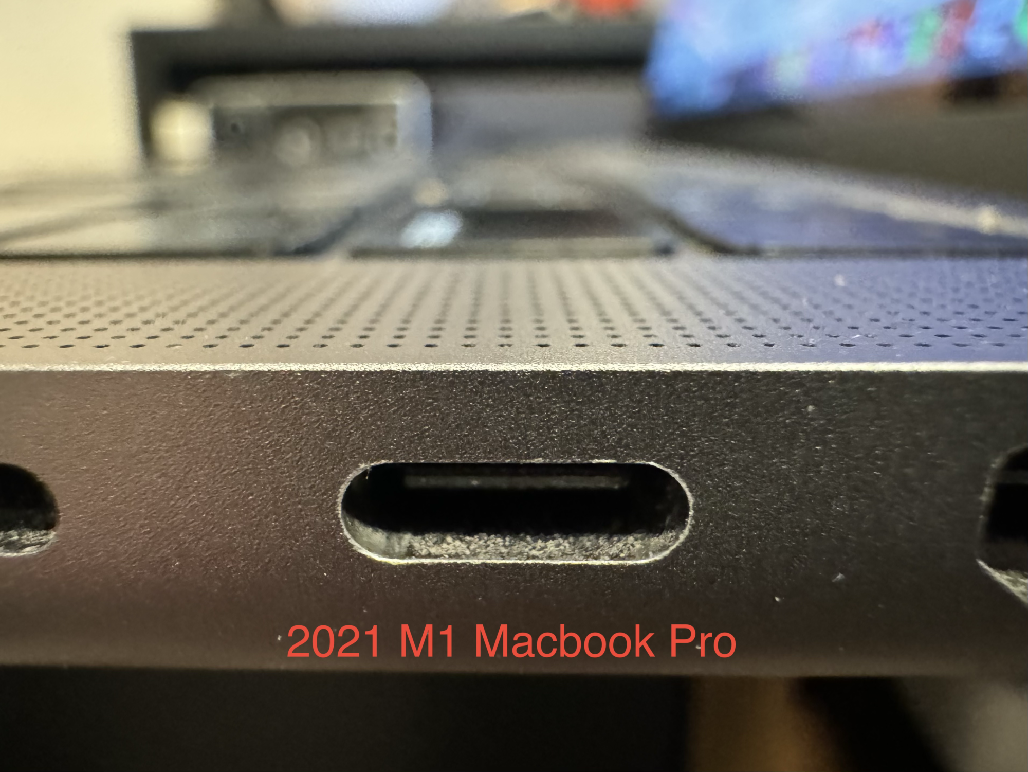 See attached images that shows a clear chamfer around the ports and larger chamfer around the outside edges of the machine. For the pictures I am comparing my space gray M1 MacBook Pro 14" work computer compared to my personal Space Black M3 MacBook Pro 16".