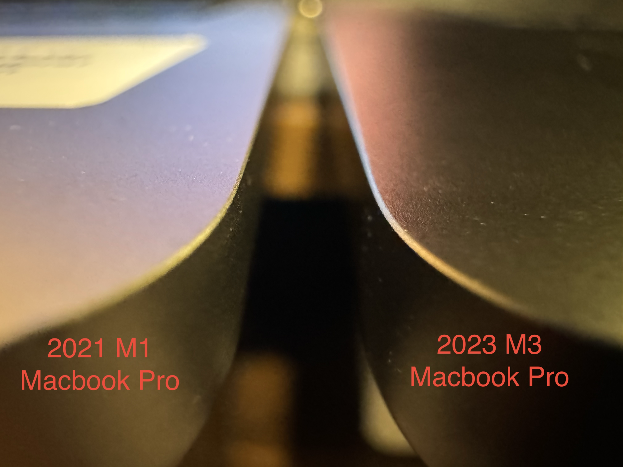 So I noticed the new M3 MacBook Pros have another design change compared to the M1 and M2 versions that Apple didn't announce. Chamfered edges around the ports and what appears to be a thicker chamfered edge on all edges of the laptop. With previous MacBook Pros there is a straight edge around the ports and a slight chamfer on the laptops edges.