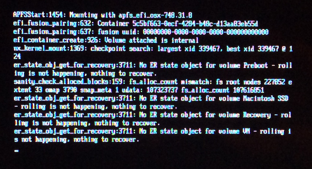 1 - The first picture is normal in boot verbose - line codes APFS.