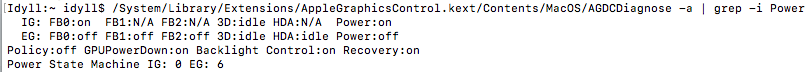 I can't get external displays to work with my MBP late 2011. I know this thread is about forcing MBP to use the Integrated GPU because the AMD GPU failed. But both of my cards appear to be working, just won't switch (default) cards when I plug in display (via HDMI to Thunderbolt). MBP doesn't see display at all, but same display and connection/adapter works on a newer MacAir.