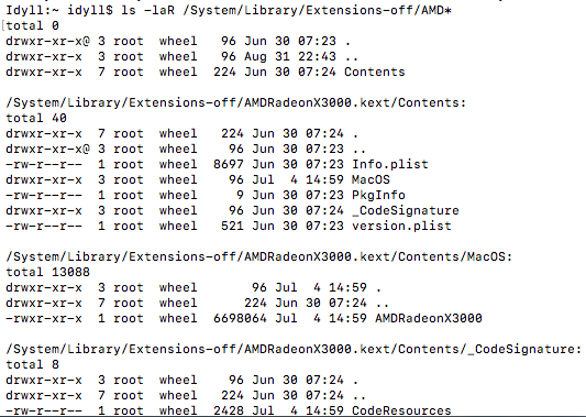 sudo chmod -R 755 /DisableExtensions/AMDRadeonX3000.kext