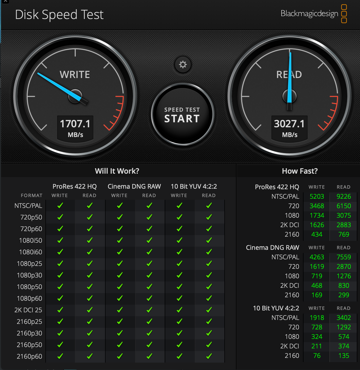 Did it using PNY 2130. And the speed is as advertised (3100++). Stop using that black magic btw, use atto disk for more accurate test.