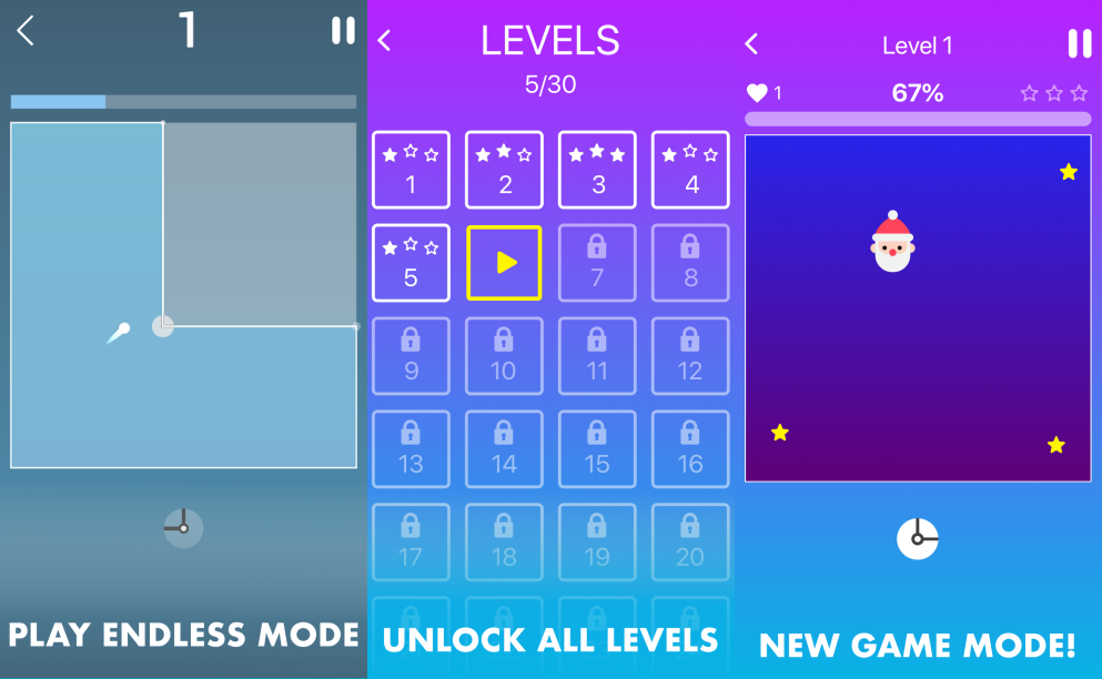 This is a puzzle game in which you have to cut off the territory without touching the ball to pass through level after level. The principle is not complicated, but do not be seduced, at the same time to predict the trajectory of the ball and quickly act not so easy.