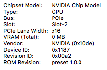 In NVIDIA Driver MAnager, the slot where the card is says pci10de,fb0