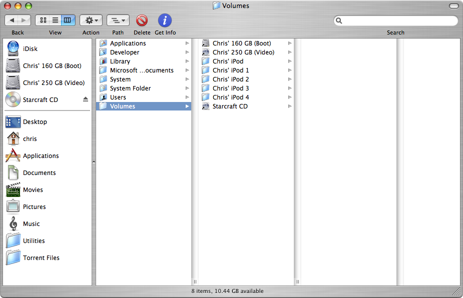 2. Then go into column view in finder (Apple Key + 3). This will allow you to see a hidden Volumes folder as in my screenshot.